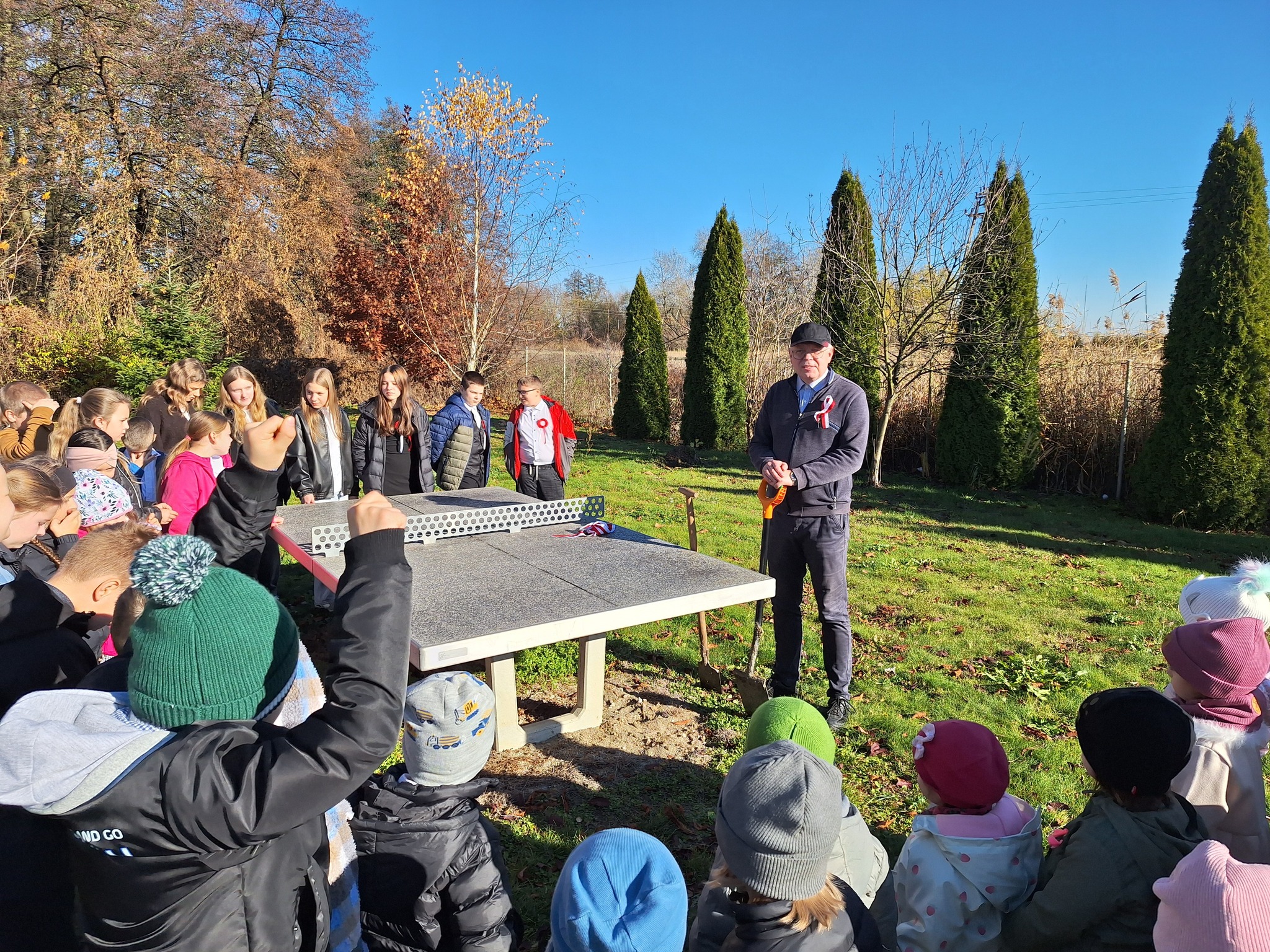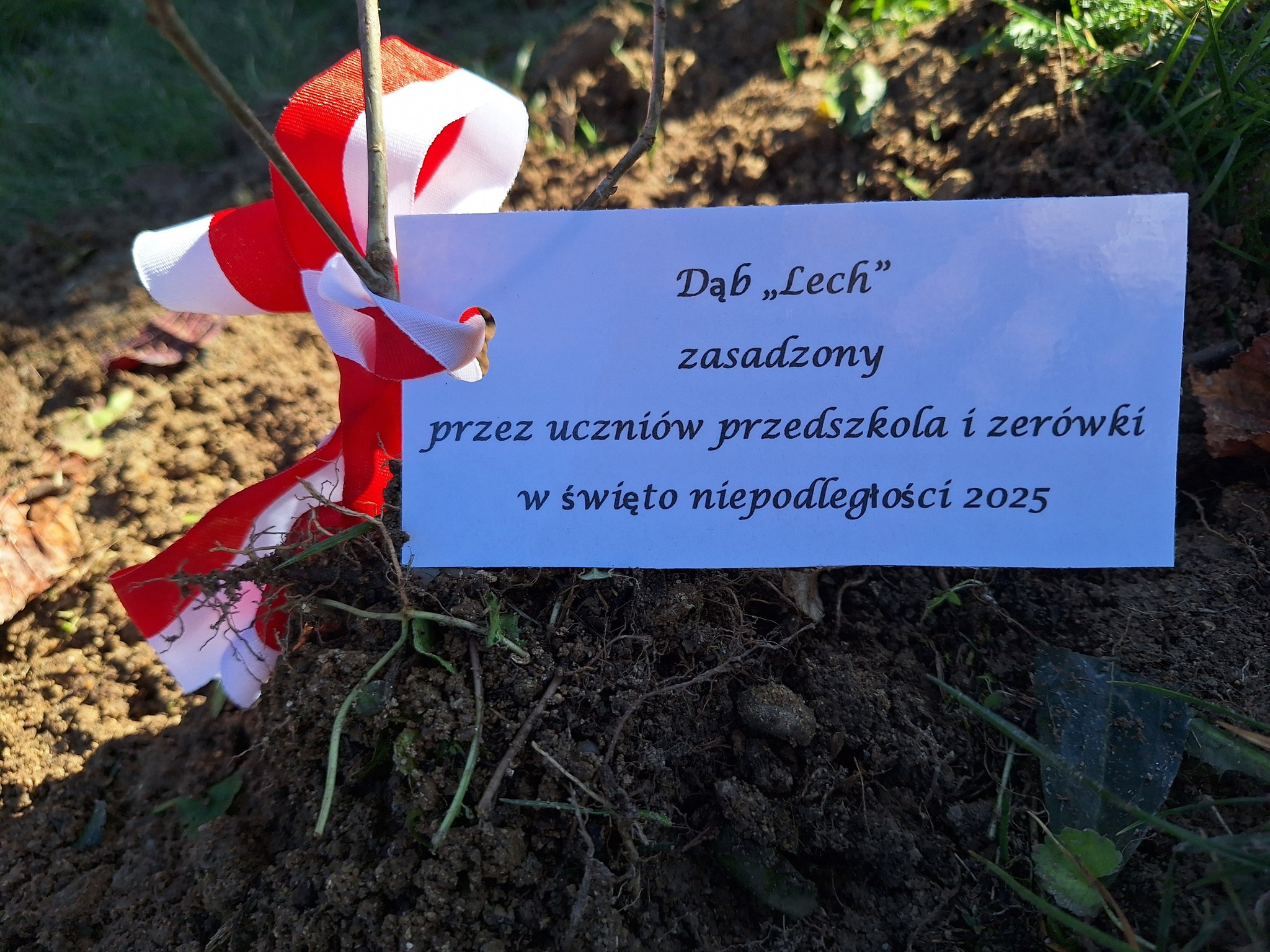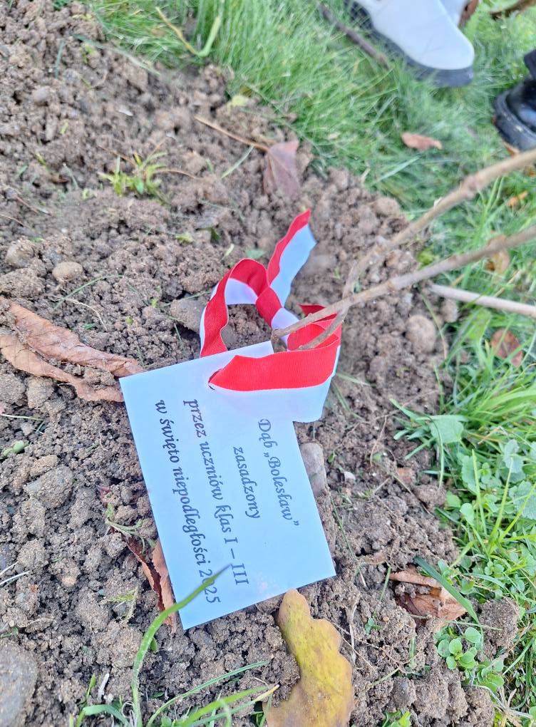 Każdy symboliczną łopatą przyczynił się do sadzenia drzewek. Będziemy obserwować jak dęby będą z każdym rokiem większe i będą nam przypominać o niepodległej Ojczyźnie.