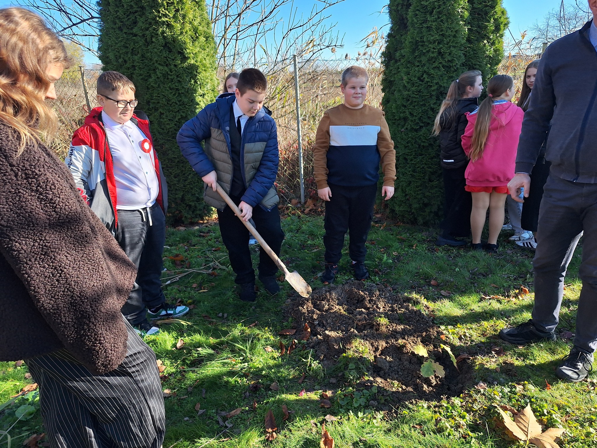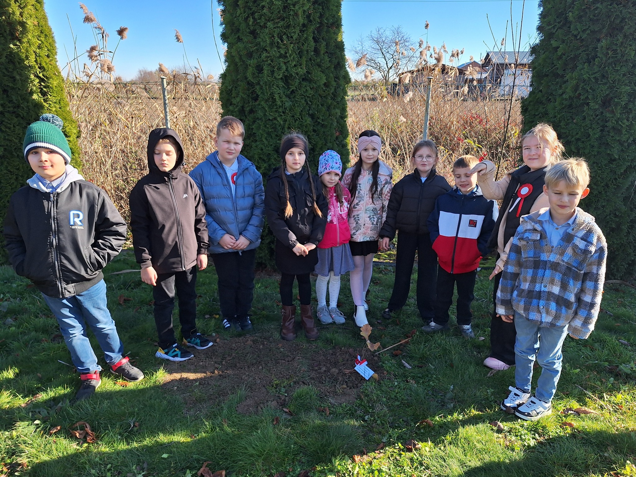 Uczniowie z klas I -III, z klas IV-VII, oraz dzieci z przedszkola i zerówki zasadzili swoje drzewka. Nadaliśmy im imiona polskich władców: Mieszko, Bolesław, Kazimierz oraz imię legendarnego Lecha.