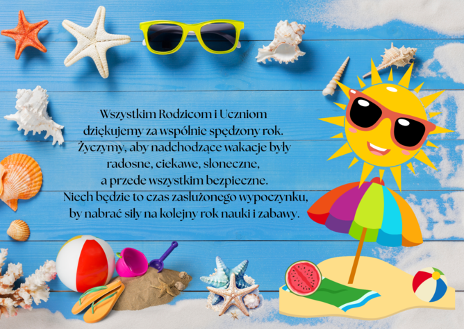 Życzymy Wam wspaniałych wakacji, pełnych radości, odpoczynku i niezapomnianych przygód!
