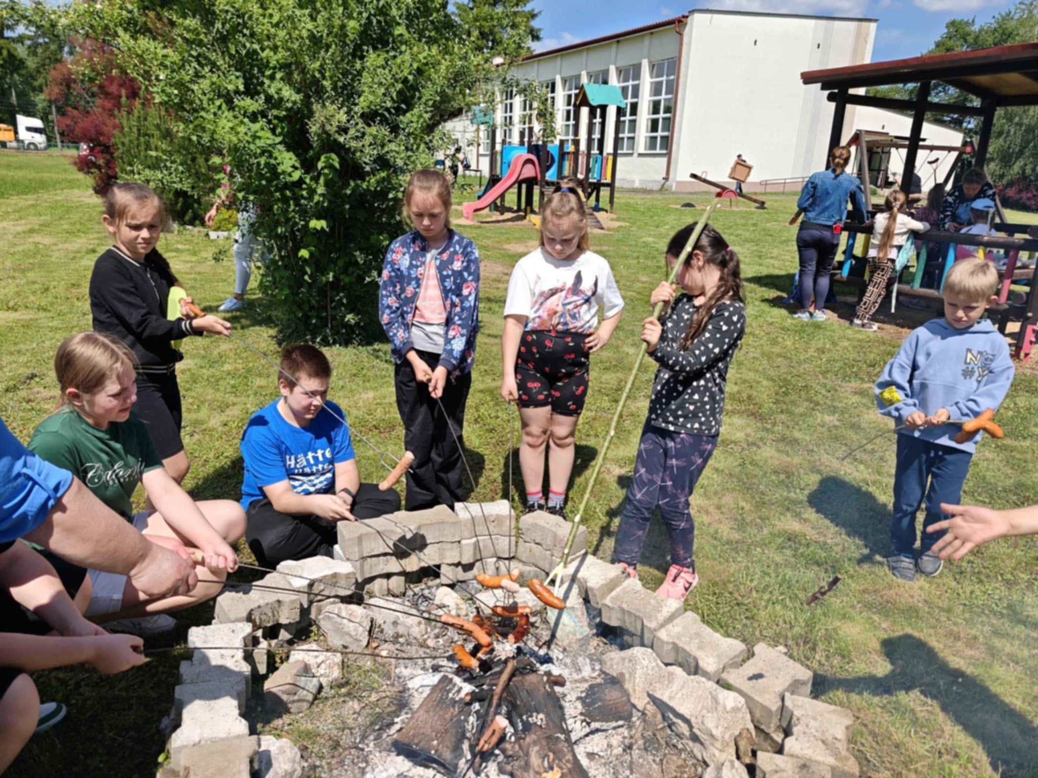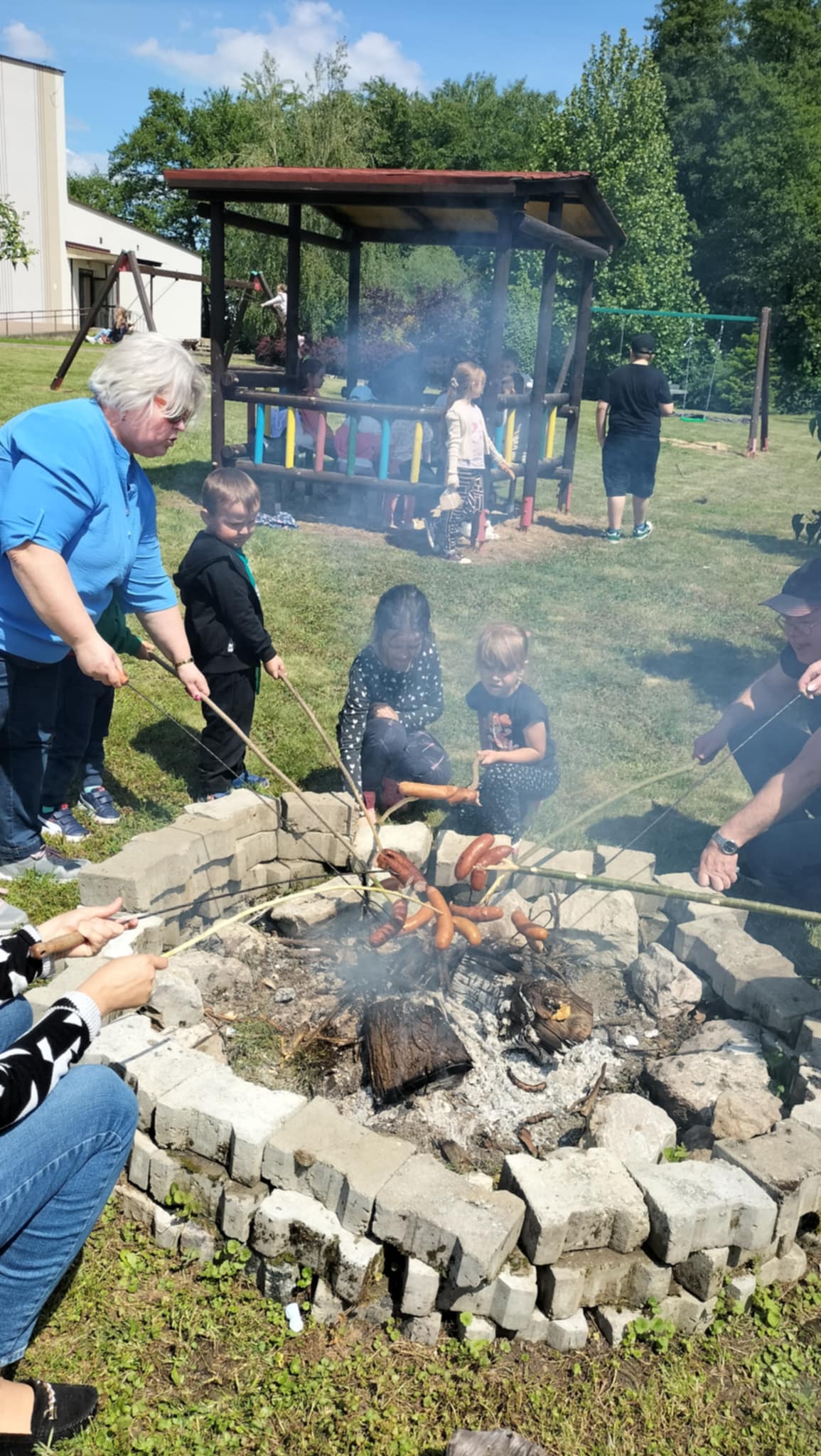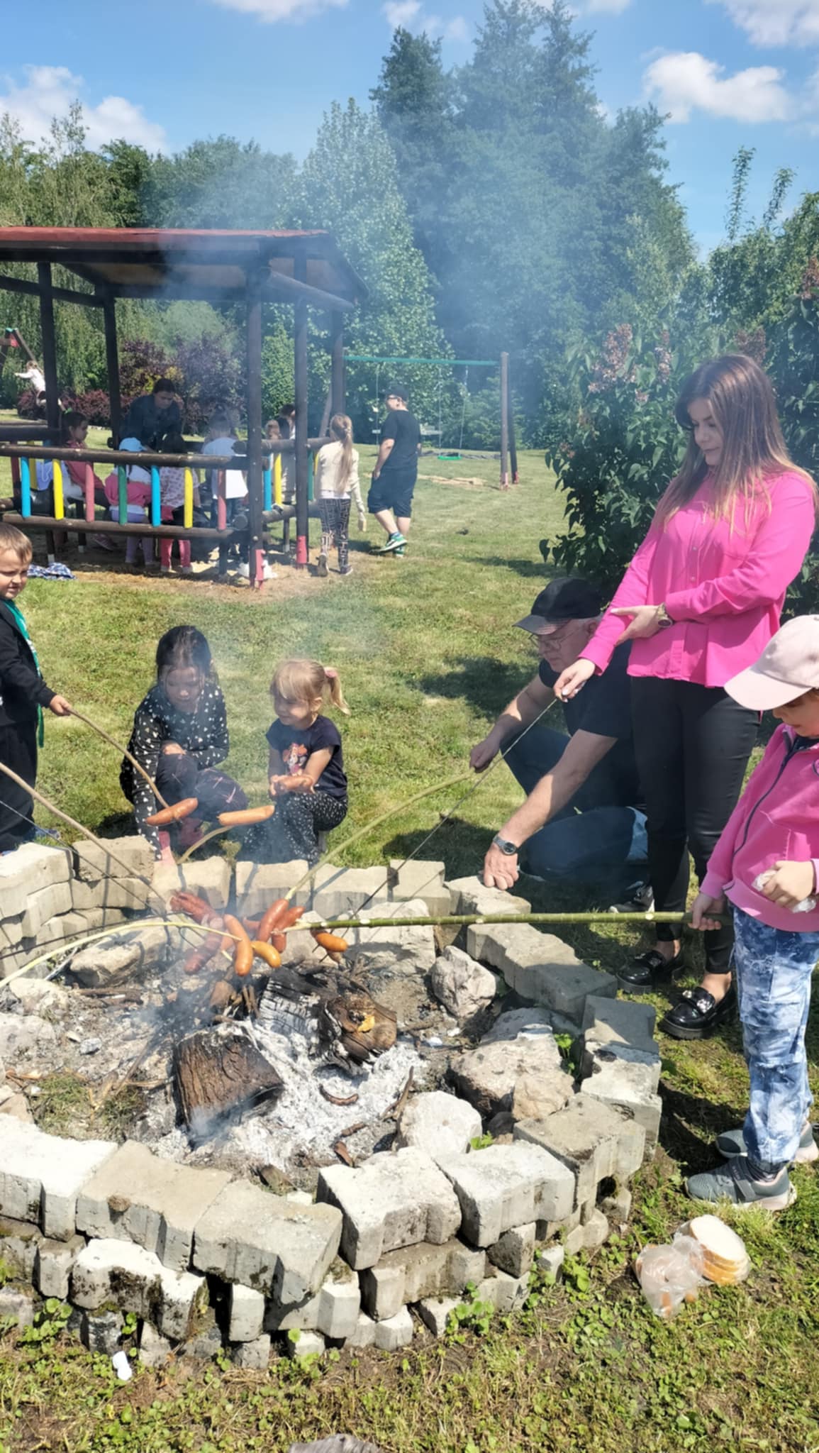Na sam koniec wszyscy spotkali się przy ognisku na wspólnym pieczeniu kiełbaski.Najmłodsi jak zawsze chętnie korzystali także z placu zabaw.